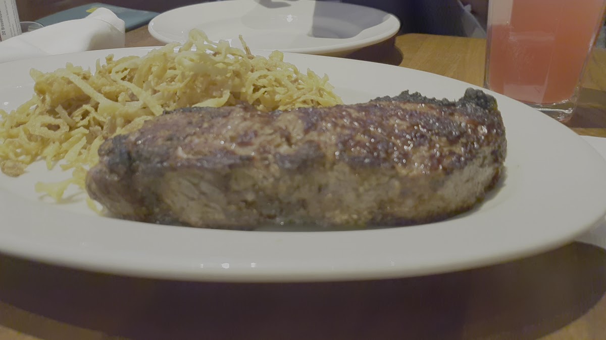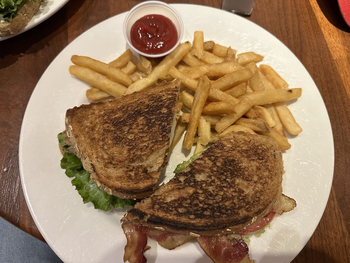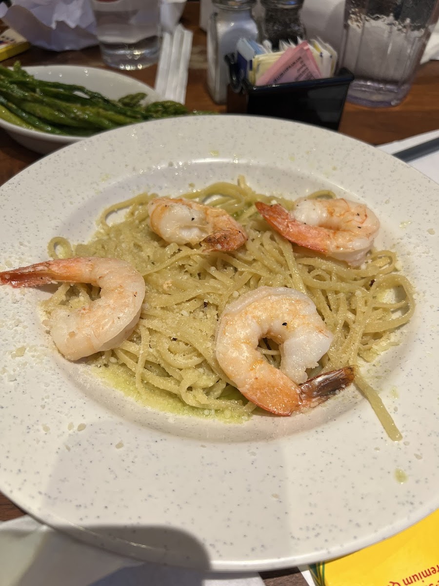 Best place to eat in an airport! We had a lot of time before our flight and this place was right next to our gate. The restaurant is very nicely decorated. It’s classy and upscale. Lots of crown moulding and beautiful wood trimming. The menu is very big! It’s great to have options when dining in the airport! We were sat pretty quickly considering there was a line waiting to ask for a seat. We were sat right next to the kitchen which I wasn’t too crazy about but I don’t think my husband even noticed. He ordered the seared tuna for an entree and the shrimp cocktail as an appetizer. I ordered the salmon for lunch. My husband LOVED his tuna! It was perfect. I really liked my salmon too. It was a delicious, healthy choice. Set on a bed of wilted spinach and came with a lemon wedge, it was very tasty. We each had a glass of wine as well. Our bill was a little over $200 after tip, so it can be a bit pricey but we would definitely go here again. The only issue I had was that after finishing my wine you could see that it was dirty. It still had red wine stains in it. I used to work in the restaurant industry and I know the glasses just go into a dishwasher; but as an upscale restaurant you have to check the glasses! You cannot give your customers glasses with lipstick stains on them or a glass that looks dirty in any other way. The dishwasher doesn’t always do the best job.